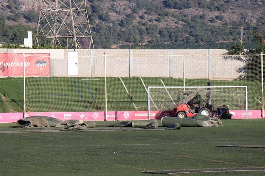 Comienzan los trabajos de sustitución del césped artificial y el sistema de riego del estadio Nou Camp de Morvedre