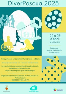 Por último, el DiverPascua que organiza la Concejalía de Servicios Sociales se llevará a cabo en el Casal Jove de Puerto de Sagunto en horario de 9:30 a 13:30 horas. Este campus está dirigido a personas del municipio con diversidad funcional de entre 5 y 30 años. El número de plazas es de 15 usuarios/as y una lista de espera de 5. En este caso, el plazo de inscripción acabará el 30 de marzo.