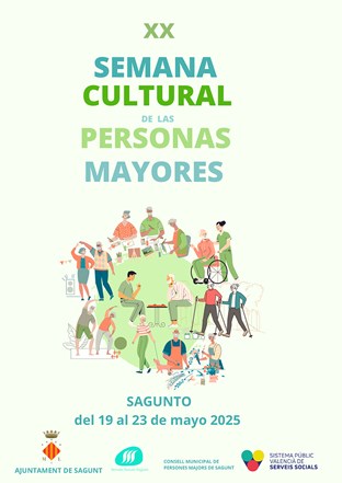 Como todos los años, el área del Mayor de la Concejalía de Servicios Sociales ha organizado la Semana Cultural de las Personas Mayores en Sagunto, una celebración que este año cumple su vigésima edición. La programación se extenderá desde el próximo lunes 19 de mayo hasta el viernes 23 del mismo mes e incluye una extensa y variada lista de actividades entre las que destacan talleres, excursiones, concursos, actuaciones musicales y el tradicional homenaje a las personas centenarias.
