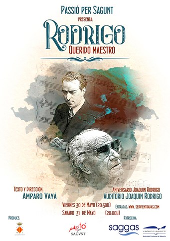 El auditorio Joaquín Rodrigo acogerá la obra de teatro sobre la vida del compositor universal de origen saguntino el viernes 30 de mayo a las 20:30 horas, así como el sábado 31 a las 20 horas. El acceso será gratuito hasta completar el aforo de la sala, pero las personas interesadas en disfrutar de la obra deben reservar su asiento en servientradas.com.
