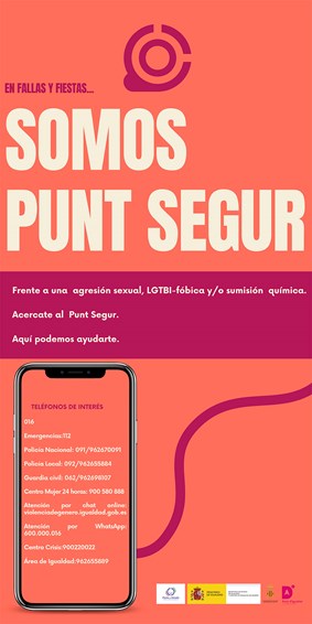 Además, mediante la campaña “Som punts segurs”, las personas que lo necesiten van a poder consultar los números de contacto necesarios para actuar ante cualquier caso de violencia. En los principales recintos se van a colgar estos carteles que, además, se repartirán a las diferentes peñas de Sagunto y Puerto de Sagunto para que los coloquen en sus casetas.
