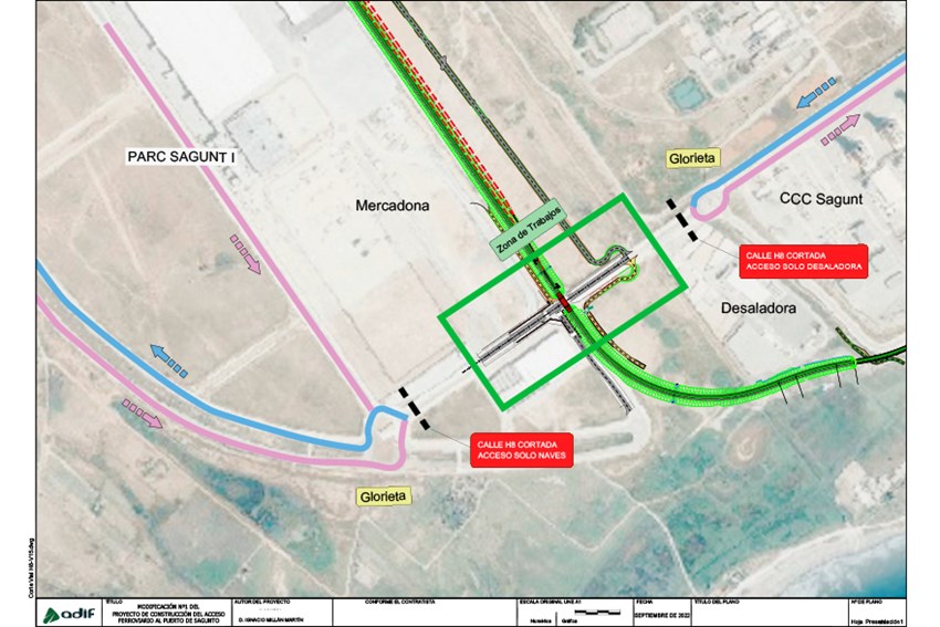 A causa de las obras que está desarrollando Adif (Administrador de Infraestructuras Ferroviarias del Ministerio de Transportes, Movilidad y Agenda Urbana) con el fin de construir el acceso y conexión ferroviaria al puerto marítimo de Sagunto, se procederá a realizar el corte de accesos en los viales H-8 y V-15 de Parc Sagunt I. Cabe destacar que las obras y el corte de los accesos se darán a partir del próximo lunes, 20 de febrero, y se prolongarán previsiblemente hasta verano. La alternativa para acceder al núcleo de población del Grao Vell y a la zona Este de Parc Sagunt es la nueva rotonda construida en la CV-309.