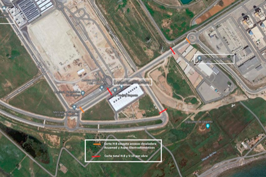 Con objeto de poder resolver los servicios afectados en la zona y ejecutar el viaducto que contempla el proyecto sobre el H-8 y el rebaje de este mismo vial, se prevé el corte de la calle desde el próximo día 20 de febrero de 2023. El corte se producirá desde las rotondas que se encuentran en ambos extremos de la zona afectada, permitiendo únicamente el acceso a los recintos de la desaladora de Acuamed por el norte y de la nave de Aspes electrodomésticos por el sur.