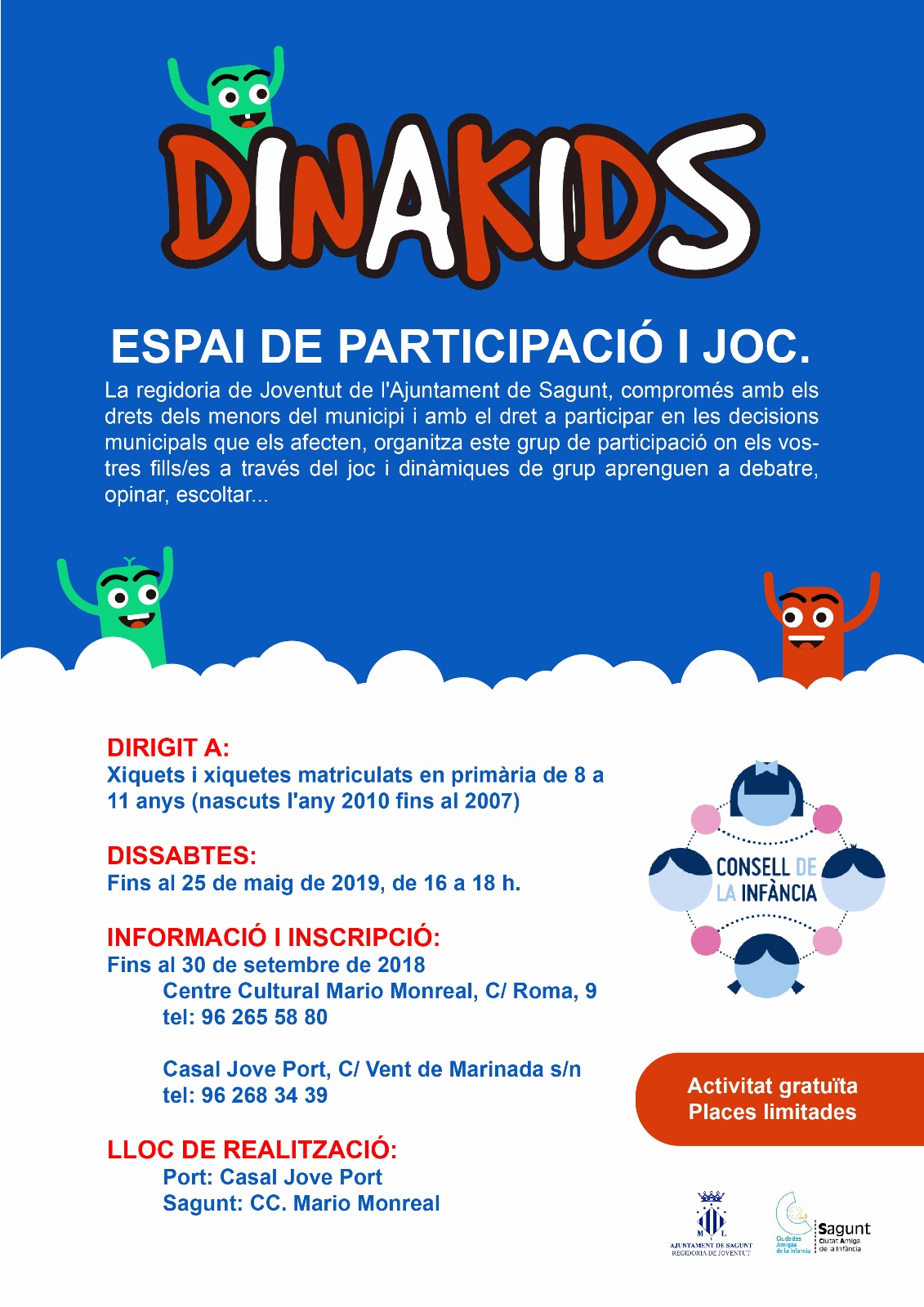 Por un lado, DINAKIDS ofrece a los menores de entre 8 y 11 años un espacio donde aprenden a debatir, opinar y escuchar a través del juego y dinámicas de grupo, adquiriendo unos valores cívicos y solidarios que les ayudan a asumir el papel protagonista que les corresponde. De esta forma, Sagunto consolida su reconocimiento como Ciudad Amiga de la Infancia.