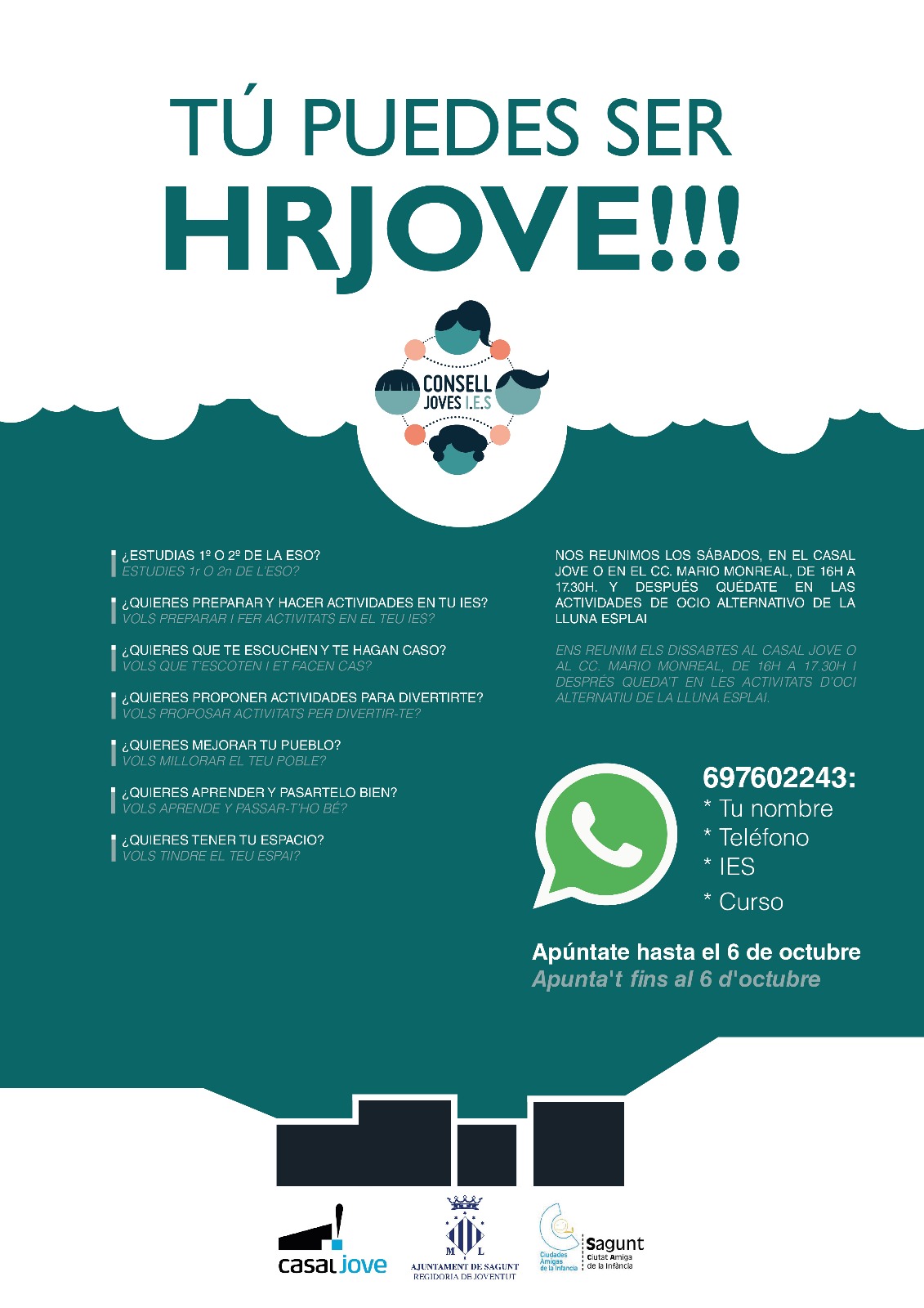 Por otro lado, HRJOVE es el grupo de participación de la concejalía de Juventud para alumnado escolarizado en 1º y 2º de la ESO. Es el grupo donde los jóvenes de entre 12 y 14 años se encargan de preparar actividades que les interesan y de proponer y sugerir iniciativas para su municipio y para su ocio.
