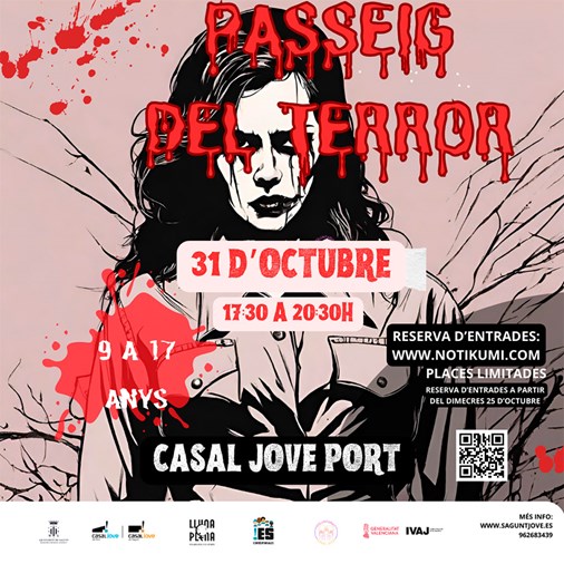 Con motivo de la festividad de Halloween, la concejalía de Juventud e Infancia del Ayuntamiento de Sagunto ofrece diferentes actividades lúdicas en los Casals Joves de Sagunto y Puerto de Sagunto. Las actividades se prolongarán desde el viernes 27 de octubre hasta el martes 31, día en el que se celebra la noche de Halloween.