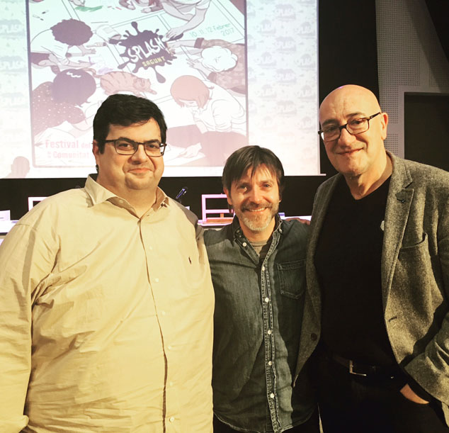 Paco Roca (en el centro ) en su última visita a Sagunto con motivo del festival de còmic Splash de 2017