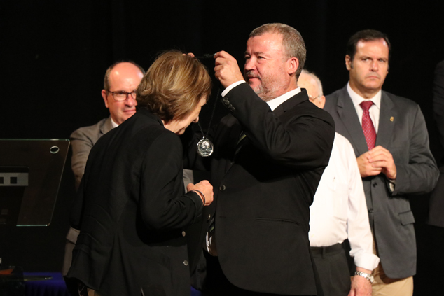 El pasado sábado, 6 de octubre, el teatro de Begoña acogió el acto institucional de entrega de Medallas de Plata de la Ciudad de Sagunto, donde se distinguió al deportista Arturo Fernández, a la catedrática emérita de arqueología Carmen Aranegui y a la psiquiatra y presidenta de la Real Academia de Medicina de la Comunidad Valenciana Carmen Leal.
