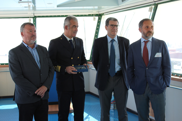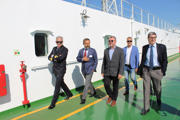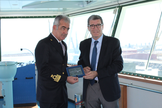 La naviera italiana Grimaldi ha iniciado hoy las escaleras de su buque Grande Baltimora, una de las embarcaciones de mayor tamaño de la compañía, con 200 metros de eslora y capacidad para transportar más de 6.000 turismos, convirtiéndose en el car-carrier más grande que ha atracado en el recinto portuario de Sagunto. Con este motivo, el presidente de la Autoridad Portuaria de Valencia, Aurelio Martínez, ha hecho entrega de una placa conmemorativa al nuevo buque Grimaldi - Grande Baltimora por su primera escalera en el puerto de Sagunto.