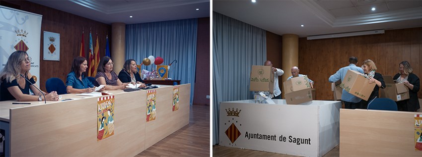 El tradicional sorteo, que se celebró en el Salón de Actos del Centro Cívico de Puerto de Sagunto, estuvo presidido por la concejala de Comercio y Mercados, Ana María Quesada, a quien acompañaron los presidentes y las presidentas de las Asociaciones de Comerciantes y el equipo técnico del departamento.