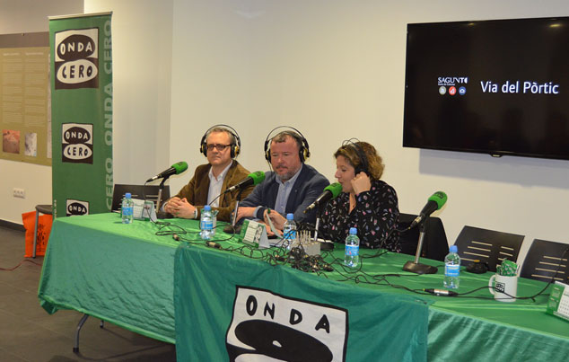 El Ayuntamiento de Sagunto y Onda Cero Sagunto, con el patrocinio de Saggas, han organizado hoy un programa de radio en directo para impulsar que la ciudad pueda convertirse en Capital Valenciana de la Romanización e impulsar el proceso de candidatura ante la Unesco para ser declarada Patrimonio Mundial de la Humanidad. La emisión ha tenido lugar en el emblemático espacio del museo de la Vía del Pórtico y ha contado con la presencia del alcalde de Sagunto, Quico Fernández, y el delegado de Cultura, José Manuel Tarazona. También han sido invitados los miembros de colectivos y asociaciones locales de patrimonio, así como los representantes de los partidos políticos del municipio.
