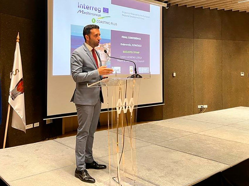 El municipio de Sagunto, representado por su alcalde, Darío Moreno, ha cerrado este martes su participación en la conferencia internacional del proyecto europeo Coasting Plus, celebrada en la ciudad croata de Dubrovnik, con un balance positivo de la experiencia respecto a la adhesión a este proyecto y también con la mirada puesta en la captación de turismo internacional así como en la captación de fondos europeos. El proyecto se enmarca en el programa Interreg Mediterranean, cofinanciado por el fondo europeo FEDER.