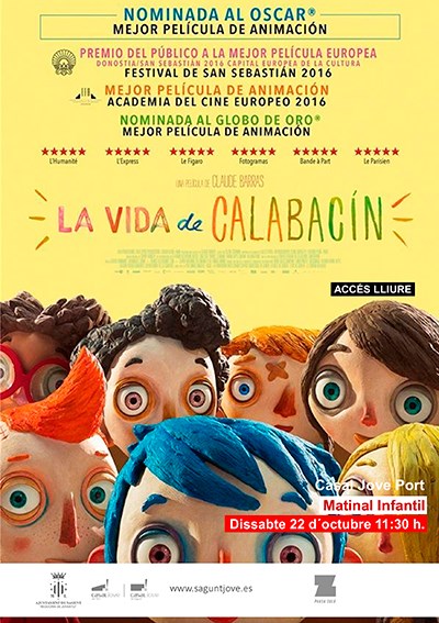 Al día siguiente, sábado 22, a las 11:30 horas, será el turno de La vida de Calabacín (2016), dirigida por Claude Barras y de 66 minutos de duración, recomendada para mayores de 7 años. Calabacín es un niño valiente que, después de perder a su madre, ha de ingresar en un hogar de acogida con otros niños huérfanos de su edad; en un primer momento se esfuerza por encontrar su lugar en este nuevo medio hostil. No obstante, con la ayuda de sus nuevos amigos, Calabacín aprende a confiar, encuentra el verdadero amor y una nueva familia.