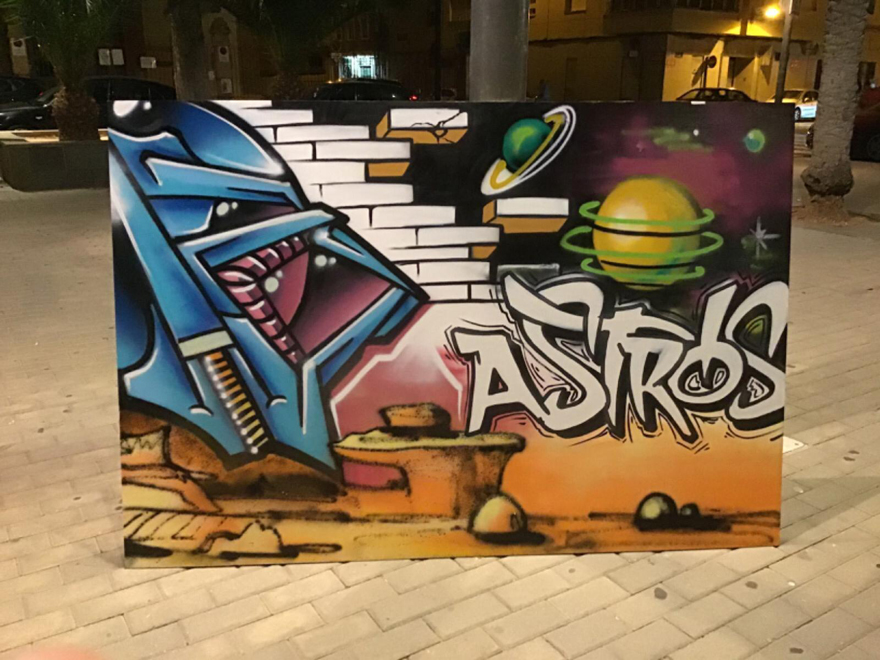 El festival Més Que Murs continúa dando color a las calles de nuestra ciudad y en esta ocasión con una intervención artística colectiva celebrada el pasado sábado, 19 de septiembre, en la plaza Cronista Chabret. Esta iniciativa, titulada Graffussió, contó con la participación de los grafiteros/as locales Bichos, Tima, Vega, Fose y Dilm que coordinados por Bize, uno de los principales artistas del arte urbano de Sagunto, pintaron cinco lienzos en un tiempo récord que se expondrá en el Casal Jove de Puerto de Sagunto.