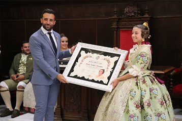Darío Moreno ha entregado el cuadro acreditativo, así como de las peinetas oficiales con el escudo de la ciudad a las falleras mayores. El alcalde ha dado la enhorabuena a Claudia Ramón y Maite Nebot y les ha deseado un buen reinado «desde este momento sois la más bella imagen de la esencia de las fiestas josefinas de Camp de Morvedre. Desde ahora sois las máximas representantes de una fiesta que hermana a la ciudad, a través de cada una de las comisiones falleras y de cada acto que llena de vida la ciudad durante todo el año».