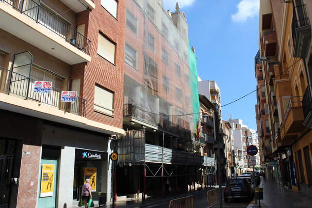 “Hace algunos meses se desprendió una de las losas que había, y el riesgo que había es que pudieran caer más. Entonces se instaló un andamio que protegía de la posibilidad de que cayeran”, explica el alcalde por sustitución, Pepe Gil.