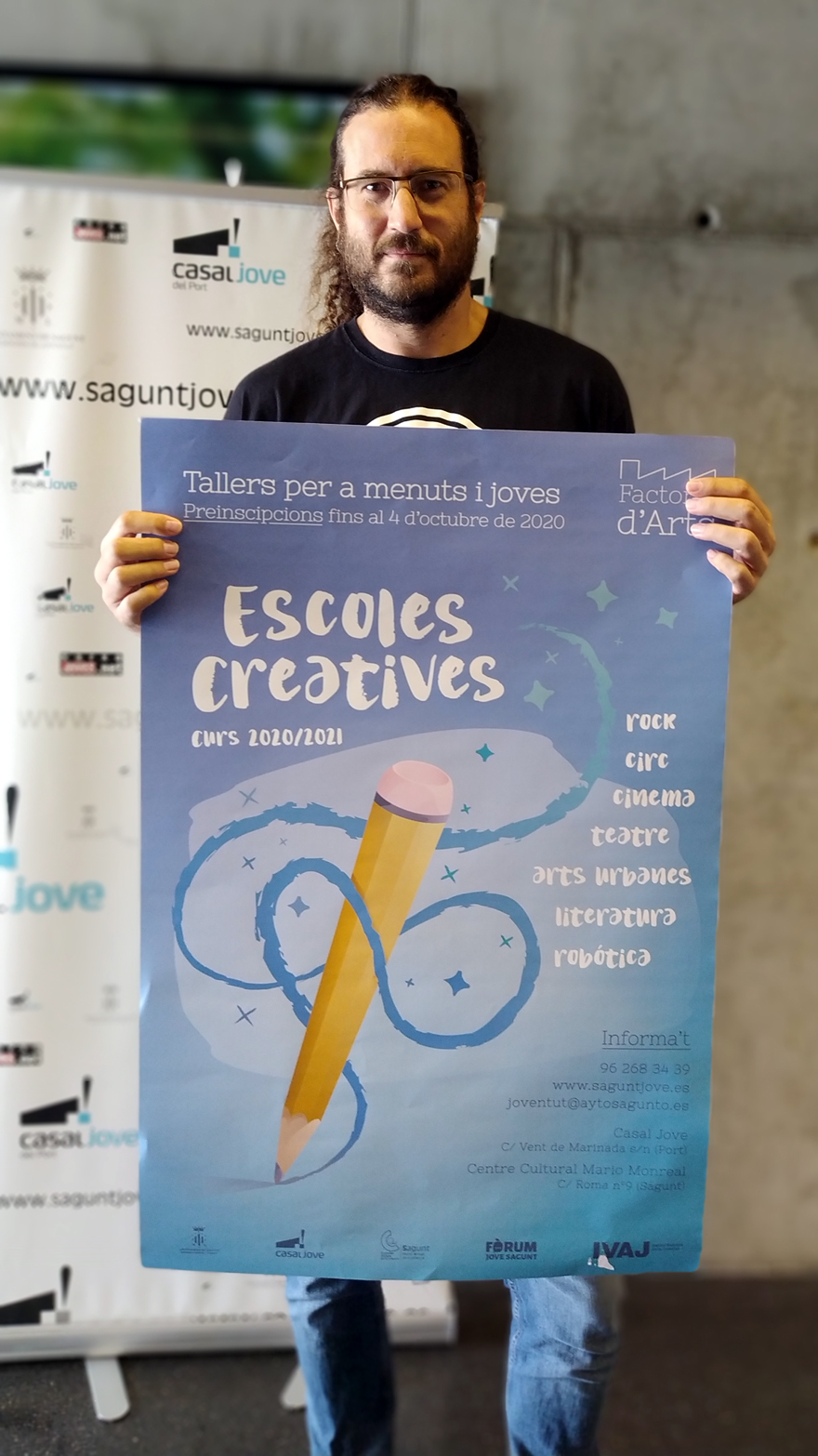 La Concejalía de Juventud e Infancia del Ayuntamiento de Sagunto vuelve a poner en marcha las Escuelas creativas dirigidas a la infancia, a la adolescencia y a la juventud de hasta 35 años. El próximo curso 2020-2021 se prepara con numerosos talleres de siete modalidades de formación artística como son la música, el cine, el teatro, la robótica, las artes urbanas, la escritura y el circo, que se desarrollarán en el Casal Jove de Puerto de Sagunto de octubre a mayo.