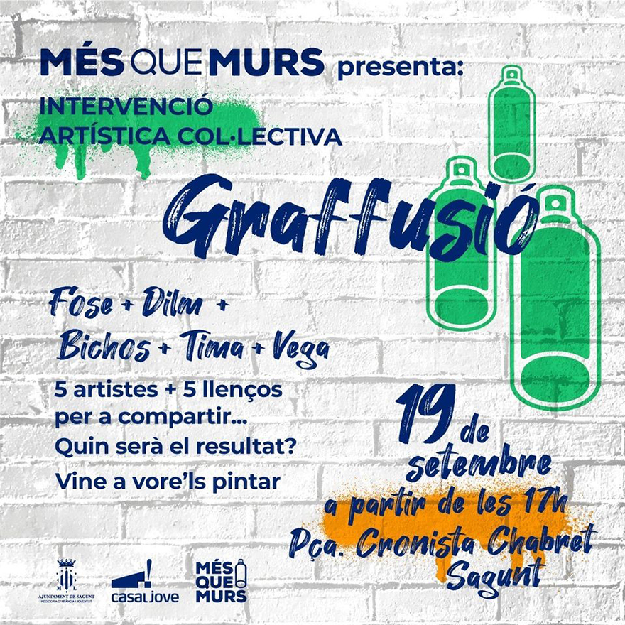 graffiti que tendrá lugar el sábado, 19 de septiembre, a partir de las 17 horas en la plaza Cronista Chabret del núcleo de Sagunto. Se trata de la iniciativa “