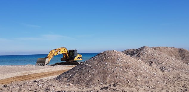 En la actuación se estima retirar, entre la playa y la gola de Quartell, cerca de 10.000 metros cúbicos de grava para paliar los problemas que ocasionó la última gota fría