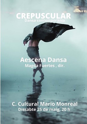 El Centro Cultural Mario Monreal de Sagunto albergará el sábado 25 de mayo la representación de Aescena Dansa, Crepuscular. Será a partir de las 20 horas y tendrá una duración de 90 minutos. Las entradas tienen un precio de 7 € y se pueden conseguir a través de Internet: https://www.agendasagunto.com/espectaculo/3/crepuscular.html. Esta actuación está incluida en la programación primaveral de la delegación de Cultura.