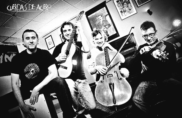 El cuarteto Cuerdas de Acero, formado por los músicos valencianos Manolo Segarra (violín), David Forés (chelo), Toni Cotolí (guitarra) y Vicente Merodio (percusión), nos ofrece un concierto pedagógico dinámico y atractivo, donde nos presentan sus diferentes instrumentos, explicando la técnica de interpretación de cada uno de ellos, desde un punto de vista novedoso.
