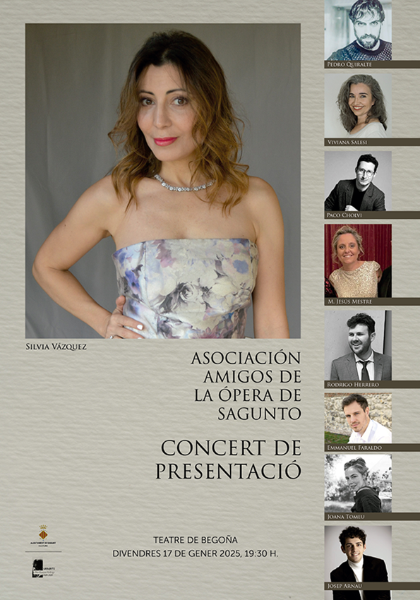 El concierto contará con la participación de la soprano internacional Silvia Vázquez, quien será acompañada por un destacado elenco de artistas, entre ellos Emmanuel Faraldo, Joana Tomeu, Josep Arnau, M. Jesús Mestre, Pedro Quiralte, Rodrigo Herrero, Viviana Salesi y Paco Cholvi. Todos ellos interpretarán un variado programa de obras de los más reconocidos compositores de la ópera mundial, como Mozart, Puccini, Verdi y Bizet.