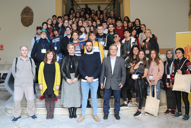 El alcalde de Sagunto, Darío Moreno; el concejal de Educación, José Manuel Tarazona; y la primera teniente de alcalde, María José Carrera, han recibido esta tarde en el Salón de Plenos del Ayuntamiento a los participantes en el programa Erasmus + del IES Jorge Juan. En total, han sido 60 alumnos y alumnas y más de 20 profesores/as los que han asistido a la recepción, tanto del IES Jorge Juan como extranjeros de diferentes países, todos ellos participantes del proyecto europeo ‘Schools United by Sciencie’. También ha estado presente la directora del IES Jorge Juan, Gemma Pérez, así como la coordinadora del Erasmus del centro, María Nolasco.