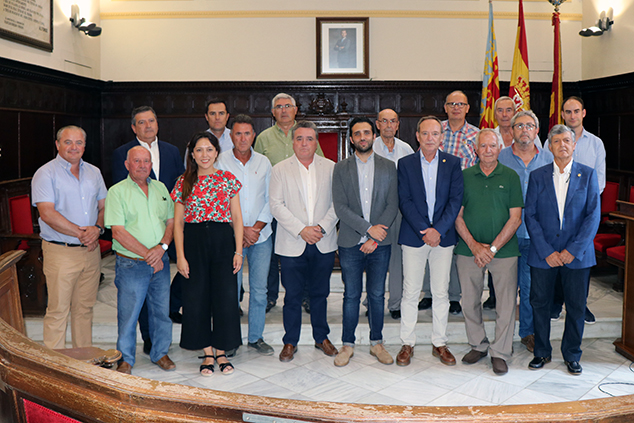 El alcalde de Sagunto, Darío Moreno, ha recibido este martes, 2 de julio, en el Salón de Plenos a los miembros del Tribunal de las Aguas de Valencia, que han visitado el municipio con el objetivo de conocer en persona la Comunidad de Regantes de Sagunto. Así, el encuentro ha contado con la presencia de la concejala, Gloria Parra; el concejal, Javier Raro; el presidente del Tribunal de Aguas de Valencia, José Font Sanchis y miembros de la institución; y el presidente de la Comunidad de Regantes de Sagunto, José Peris Quevedo.