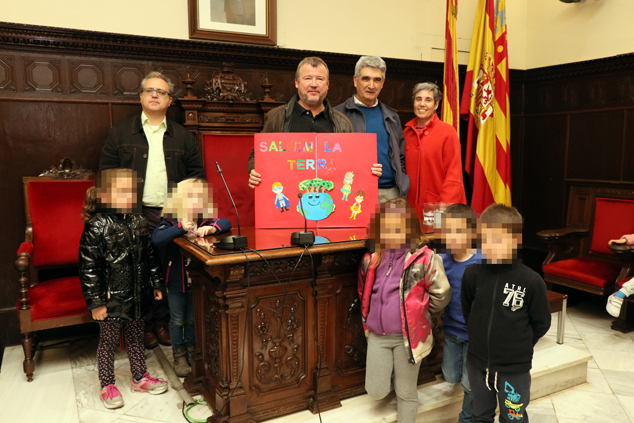 El alcalde de Sagunto, Quico Fernández, ha recibido hoy en el consistorio a 120 alumnos y alumnas de infantil del colegio Villar Palasí quienes le han presentado el proyecto Salvem la terra, un trabajo en el que han estudiado la situación en la que han visto cómo se encuentra el municipio. El alumnado del centro, junto a varias profesoras, han entregado al alcalde, así como al concejal de Medio Ambiente, Enric Ariño, y el delegado de Educación, José Manuel Tarazona, un dosier donde explican la situación que han visto en la que se encuentra el municipio, así como las propuestas de mejora que aportan.