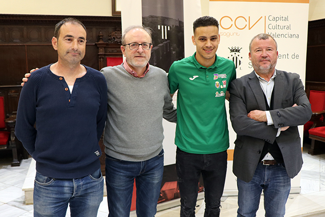 El alcalde de Sagunto, Quico Fernández, y el concejal de Deportes, Miguel Chover, recibieron al atleta local Abderrahman El Khayami en el Salón de Plenos del consistorio donde le hicieron entrega de la insignia de la ciudad por proclamarse campeón de España de Cross por equipos en la modalidad de relevo mixto, el pasado domingo, 24 de febrero, en el campeonato celebrado en la localidad de Linares (Jaén).