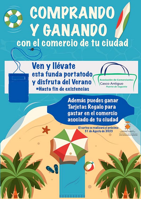 Durante la campaña de verano, que ya está en marcha y se desarrollará hasta el 31 de agosto, se regalan fundas porta-todo para la playa y además el último día, 31 de agosto, se sortearán cheques regalo para utilizarlos en los mismos comercios locales, que se podrán disfrutar hasta el 15 de octubre.