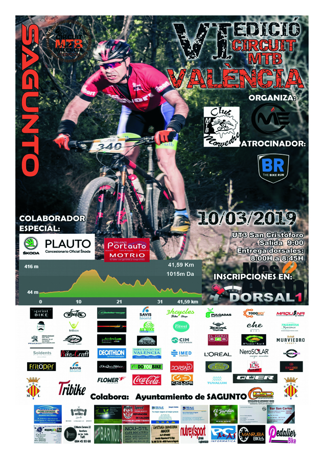 Por último, el presidente del club MTB Camp de Morvedre ha afirmado que están “dentro del circuito MTB Valencia, donde hay ocho pruebas y nosotros somos la quinta, que es donde empieza la parte más dura; estamos encantados y con mucha ilusión también por el nuevo traje que hemos hecho este año y esperamos que la gente del pueblo venga a ver la marcha y a apoyarnos. En el circuito hay una general de todas las marchas y este año tenemos a un líder del club, que es Juan Hernández, y que va primero en bicicletas e-bike”.