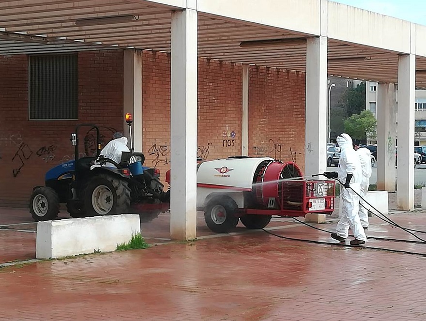 Agricultores prestando ayuda con su maquinaria al Consell Agrari para la desinfección de las calles
