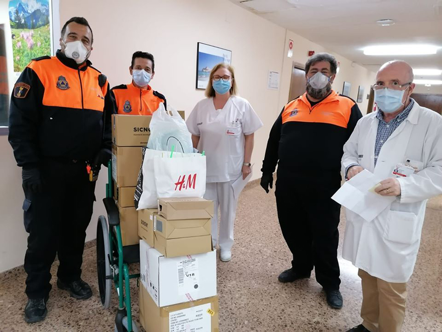Protección Civil entregando mascarillas en el Hospital de Sagunto