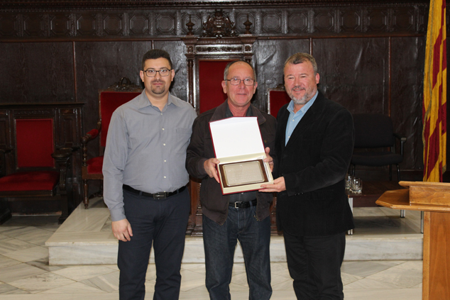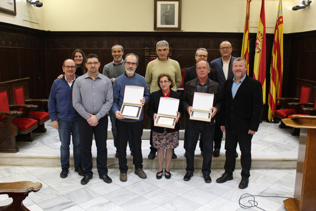 El alcalde de Sagunto, Quico Fernández, ha entregado una placa a los tres jubilados del 2017 que son María Isabel Morales López, del departamento de Servicios Sociales; Miguel Gabarda oliveros, del departamento de Urbanismo; y José Manuel Oliva Furió, del Consell Local Agrari.