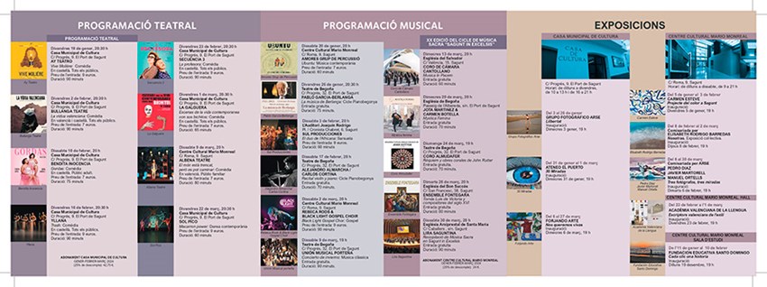 La concejala de Cultura, Ana María Quesada ha agradecido al departamento de Cultura el trabajo que realizan, y ha comentado que toda la programación «tendrá un coste aproximado del Ayuntamiento de alrededor de 71.000 euros, de los que recibiremos desde el Ministerio la subvención de 9.000 euros en este trimestre, y del Instituto Valenciano de Cultura 12.000». Además, ha destacado que «colaboramos con la Academia Valenciana de la Lengua, en la difusión de grandes escritores valencianos y valencianas contemporáneos, y con la Fundación Educativa Santo Domingo en el desarrollo cultural de los jóvenes aprovechando nuestras salas alternativas». Por otro lado, la concejala ha querido recordar que mañana, 22 de diciembre, empieza la programación cultural de Navidad con el concierto Zambomba Flamenca, de La Mar Flamenca, en el Casal Jove de Puerto de Sagunto a las 17:30h, y ha resaltado que la entrada al espectáculo es gratuita
