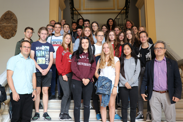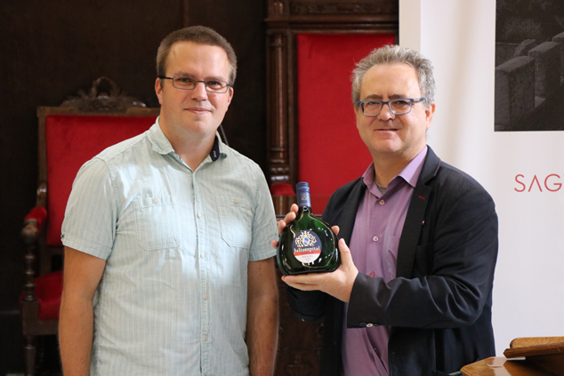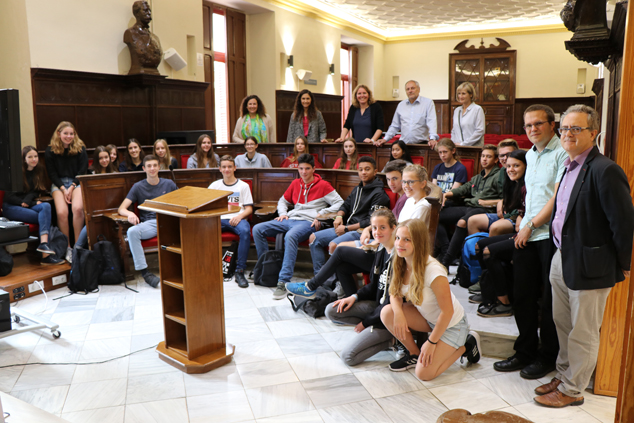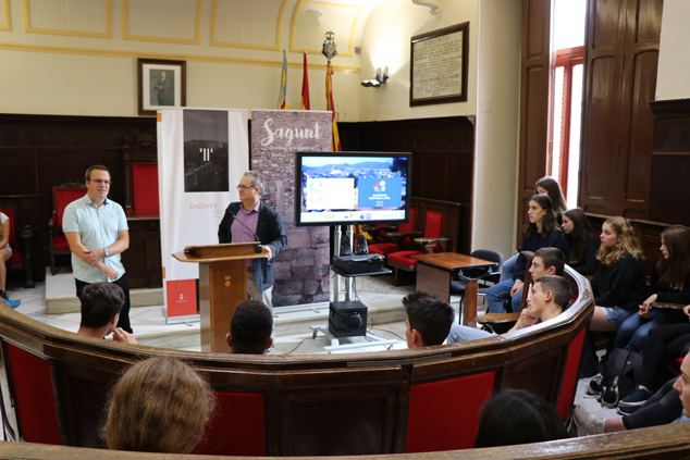 Se trata de un grupo escultórico formado por un maestro y un aprendiz y el antiguo edificio de la Escuela de Aprendices