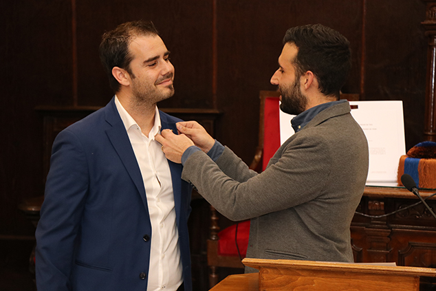 Por parte del Ayuntamiento y en nombre de toda la ciudad, el alcalde le hizo entrega de un pin de la ciudad, «ahora serás embajador de la ciudad», ha afirmado el primer edil, «ya que has pasado a ser uno de los referentes de la ciudad y es importante dar difusión a tu trayectoria para que se sepa que gente de Sagunto también llega a estas altas cuotas de excelencia».