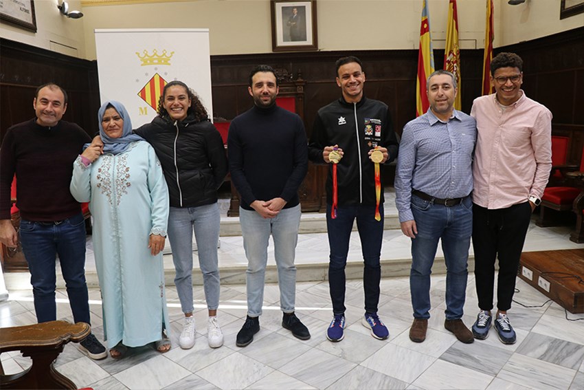 El alcalde de Sagunto, Darío Moreno, y el concejal delegado de Actividad Física, Salud y Deportes, Javier Timón, han recibido esta mañana en el Ayuntamiento a Abderrahman El Khayami por sus recientes logros deportivos en atletismo, puesto que el pasado 5 de febrero de 2023 en Oropesa del Mar, el atleta local se proclamó campeón de Europa de cross por clubs, categoría relevo mixto 4x1500, representando al Club Atletismo Playas de Castellón.
