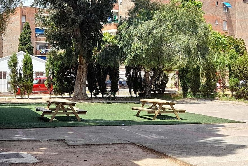 Otras intervenciones que se han llevado a cabo por parte del Ayuntamiento, a través de MANCOLE, han sido la habilitación de varias soleras de diferente tamaño para colocar bancos y mesas de madera con el fin de habilitar espacios de socialización, convivencia y coeducación en los patios, jardines y espacios abiertos del colegio, dentro del proyecto educativo del CEIP Baladre. Asimismo, también se ha habilitado otra solera para instalar el rocódromo. Igualmente, este tipo de soleras se están colocando también en otros centros educativos progresivamente dentro de sus proyectos de mejora de patios escolares inclusivos y coeducadores en los programas de actividades.