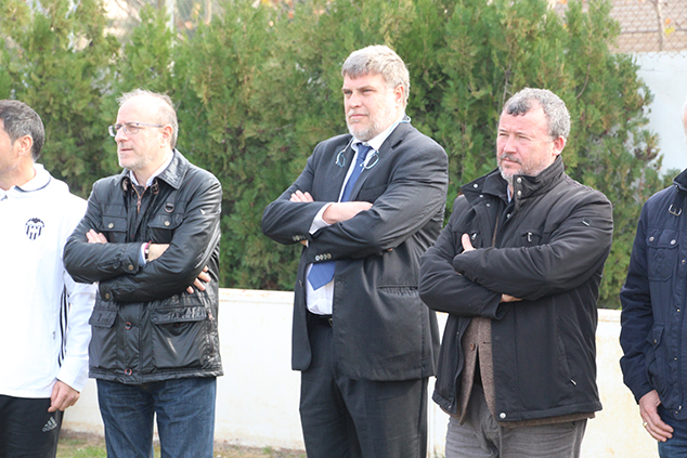 El alcalde de Sagunto, Quico Fernández, y el delegado de Deportes, Miguel Chover, han acudido esta mañana al campo de fútbol del Baladre a mostrar su apoyo al proyecto de la Escola Cor Blanquinegre Baladre, coordinado por la Fundación Valencia CF y en el que participan alumnos de los colegios del barrio.