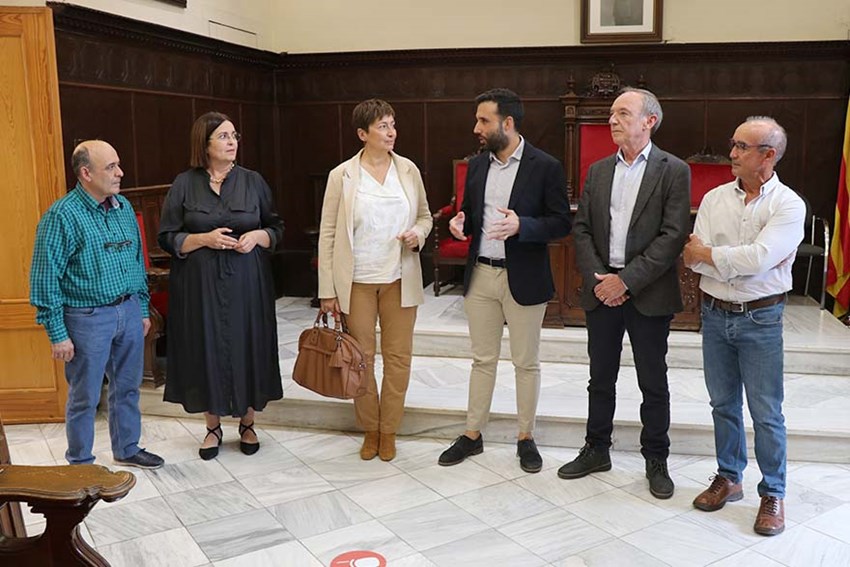 El alcalde de Sagunto, Darío Moreno ha recibido esta mañana en el Consistorio a la alcaldesa de Segorbe, Mari Carmen Climent y a representantes de la Comunidad de Regantes de Segorbe, con la intención de generar sinergias entre ambos municipios. También han estado presentes la concejala delegada de Agricultura y presidenta del Consell Agrari, Ana María Quesada, y el presidente de la Comunidad General de Regantes Acequia Mayor de Sagunto, José-Recto Peris Quevedo.