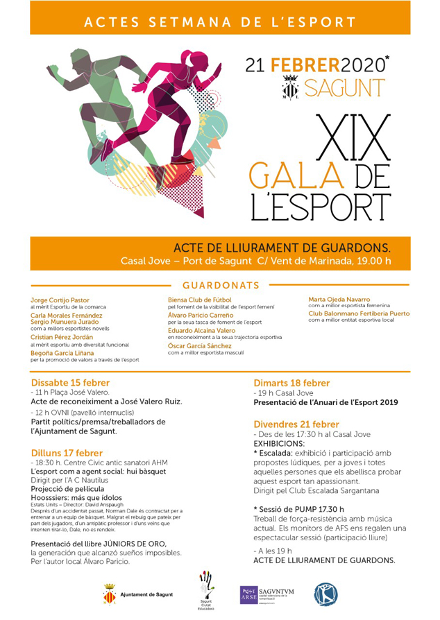 Por otro lado, para mañana 18 de febrero, a las 19 horas, se llevará a cabo la presentación del Anuario del Deporte 2019 en el Casal Jove.