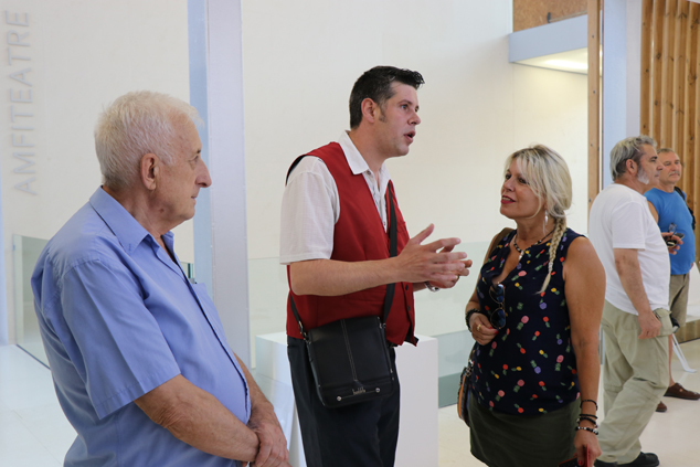 Se trata de un grupo escultórico formado por un maestro y un aprendiz y el antiguo edificio de la Escuela de Aprendices
