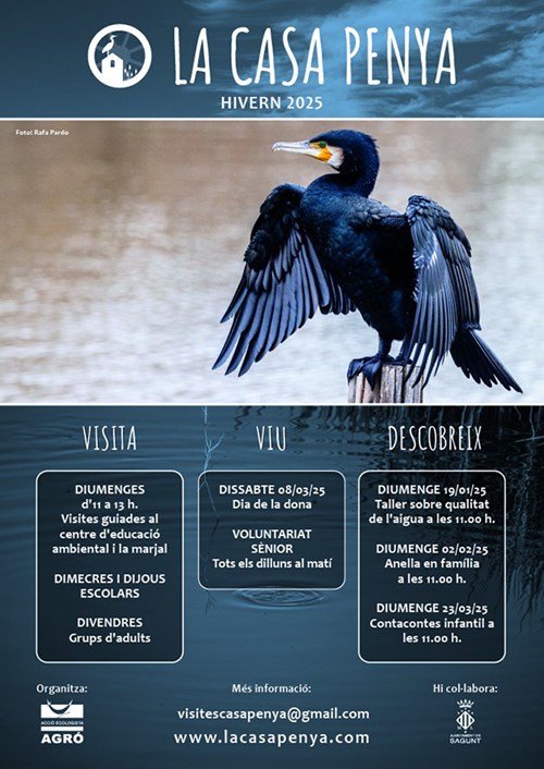 El Centro de Educación y Voluntariado Ambiental del Ayuntamiento de Sagunto, La Casa Penya, comienza el año con una nueva programación de actividades dirigidas a todos los públicos. Entre enero y marzo Acció Ecologista-Agró organiza cuatro jornadas especiales, tres de ellas para celebrar el Día Mundial de las Zonas Húmedas, el Día Mundial del Agua y el Día de la Mujer para descubrir los tesoros naturales del marjal de Almardà-Almenara. Estas actividades en las que colabora el Ayuntamiento de Sagunto se suman al voluntariado sénior de los lunes, al voluntariado escolar de los miércoles y a las visitas guiadas de los domingos.