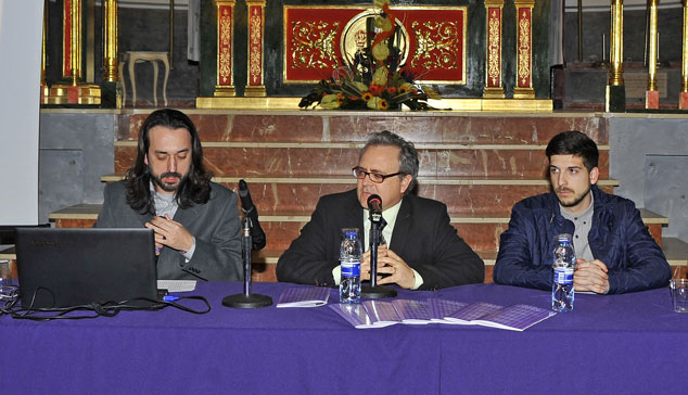 De izq. a der. José Duce, director del coro Amystis; el delegado de Cultura, José Manuel Tarazona; y un miembro de la Mayoralía 2016