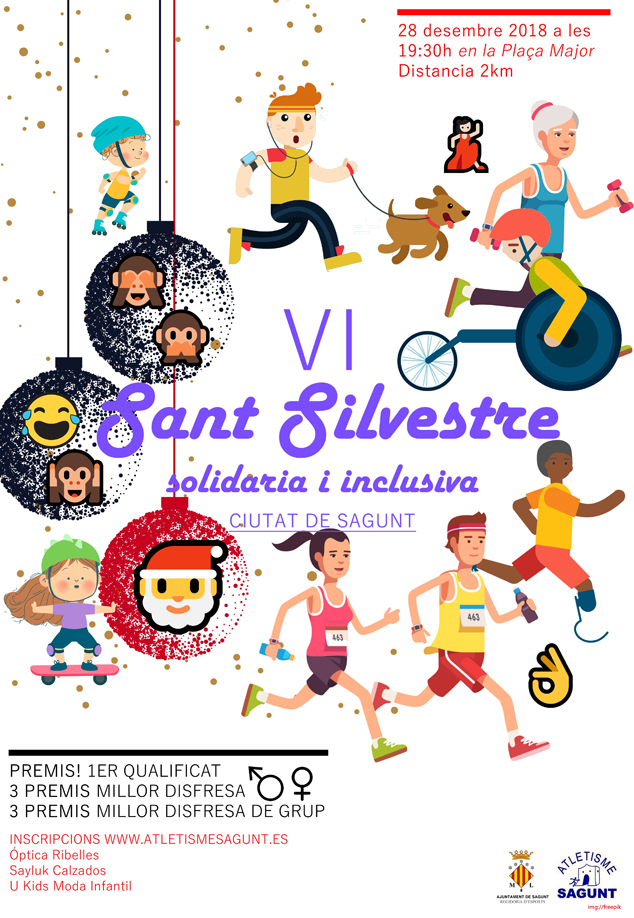 El Club Atletisme Sagunt organizará la VI carrera San Silvestre Ciutat de Sagunt, en colaboración con el Ayuntamiento de Sagunto, el próximo 28 de diciembre. Este año se esperan batir los récords de participación en esta carrera tan divertida, solidaria, inclusiva y apta para todos y todas, donde el objetivo que se busca es que familias enteras acudan a disfrutar del recorrido. La carrera, además, tiene una función social, ya que la totalidad de los alimentos aportados por los participantes a la hora de inscribirse serán donados a Cáritas Sagunto.