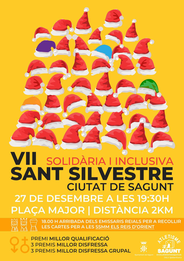 Las principales calles de Sagunto acogerán mañana la séptima edición de la San Silvestre Ciutat de Sagunt que organiza el Club Atletisme Sagunt en colaboración con el Ayuntamiento de Sagunto. Se trata de una prueba no competitiva abierta a toda la ciudadanía, cuyo objetivo es que las familias puedan disfrutar del recorrido de 2 km. Además tiene una función social e inclusiva, ya que se trata de una carrera solidaria que colabora con Cáritas Sagunto.