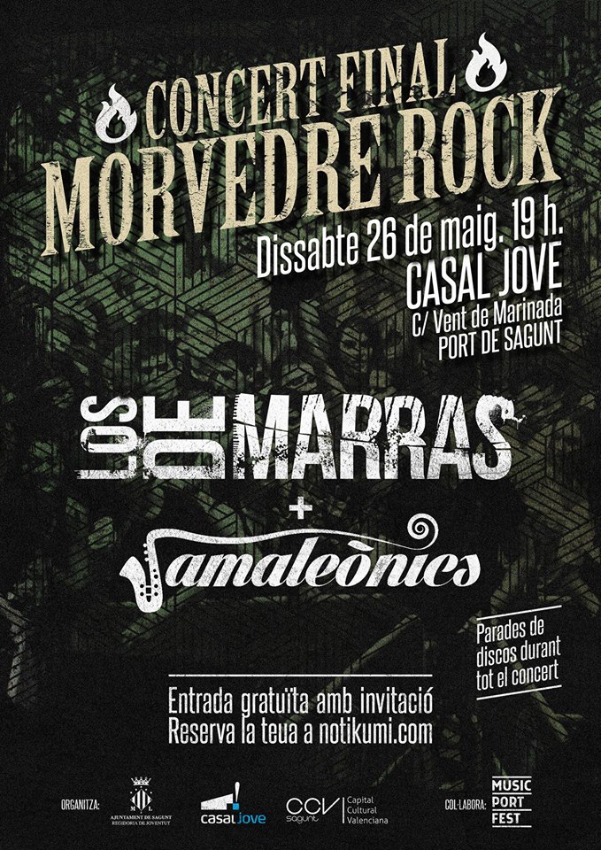Junto a los ganadores del Morvedre Rock 3.0 también actúa una banda invitada de prestigio estatal. Es el caso de Los de Marras, grupo valenciano de rock conocidos por su estilo urbano y letras comprometidas. Con seis álbumes a sus espaldas, los valencianos traen al Casal Jove su último disco, Reamanecer.