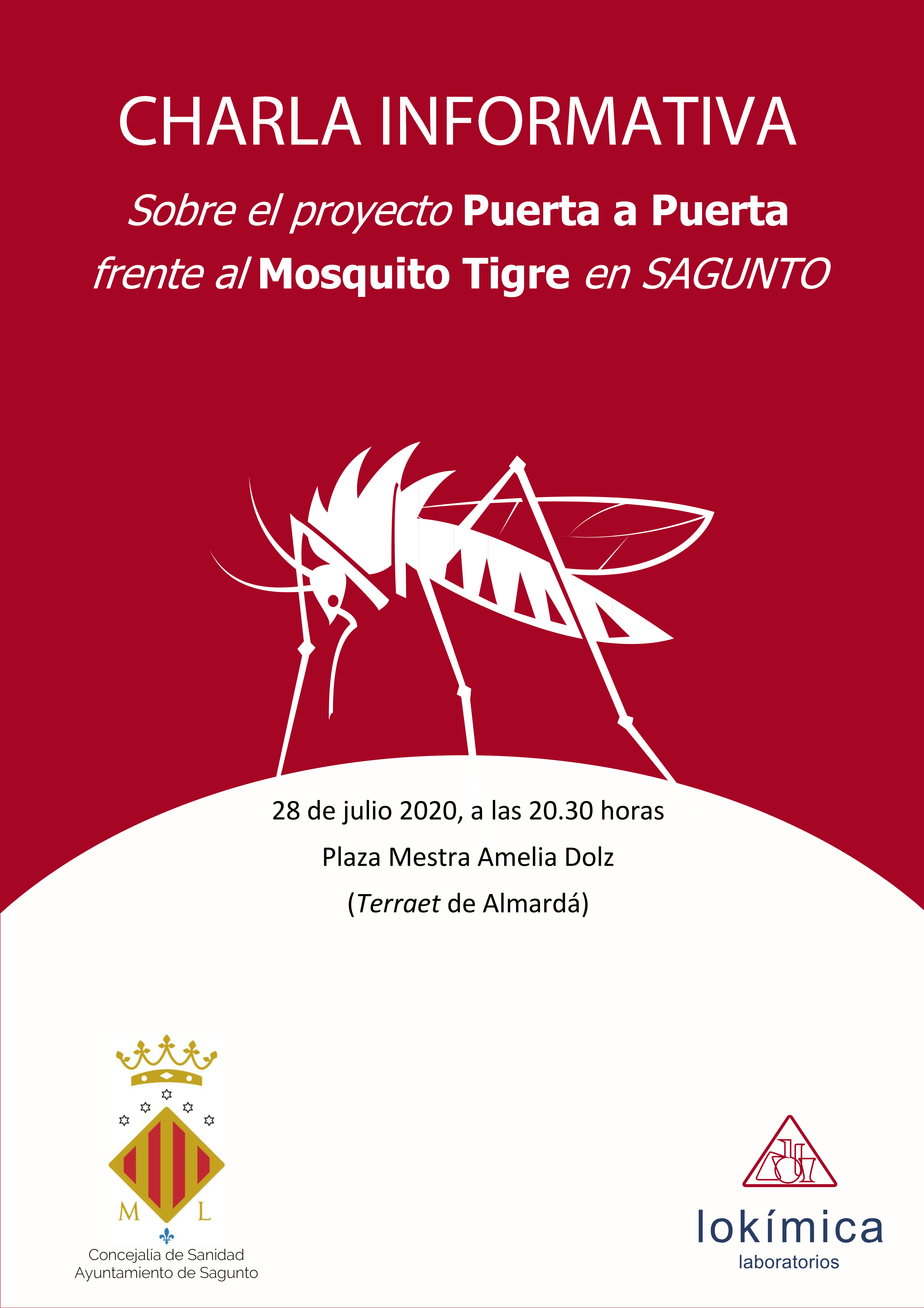 El departamento de Sanidad del Ayuntamiento de Sagunto y la empresa Lokímica, encargada de los controles de plagas en la ciudad, ofrecerá una charla-taller sobre consejos para prevenir el mosquito tigre en las viviendas el próximo martes, 28 de julio, a las 20.30 horas. El lugar será el terraet de la plaza Mestra Amelia Dolz y se darán consejos con ejemplos gráficos para sensibilizar y capacitar a la ciudadanía para luchar contra esta especie invasora en ámbitos privados y domiciliarios.